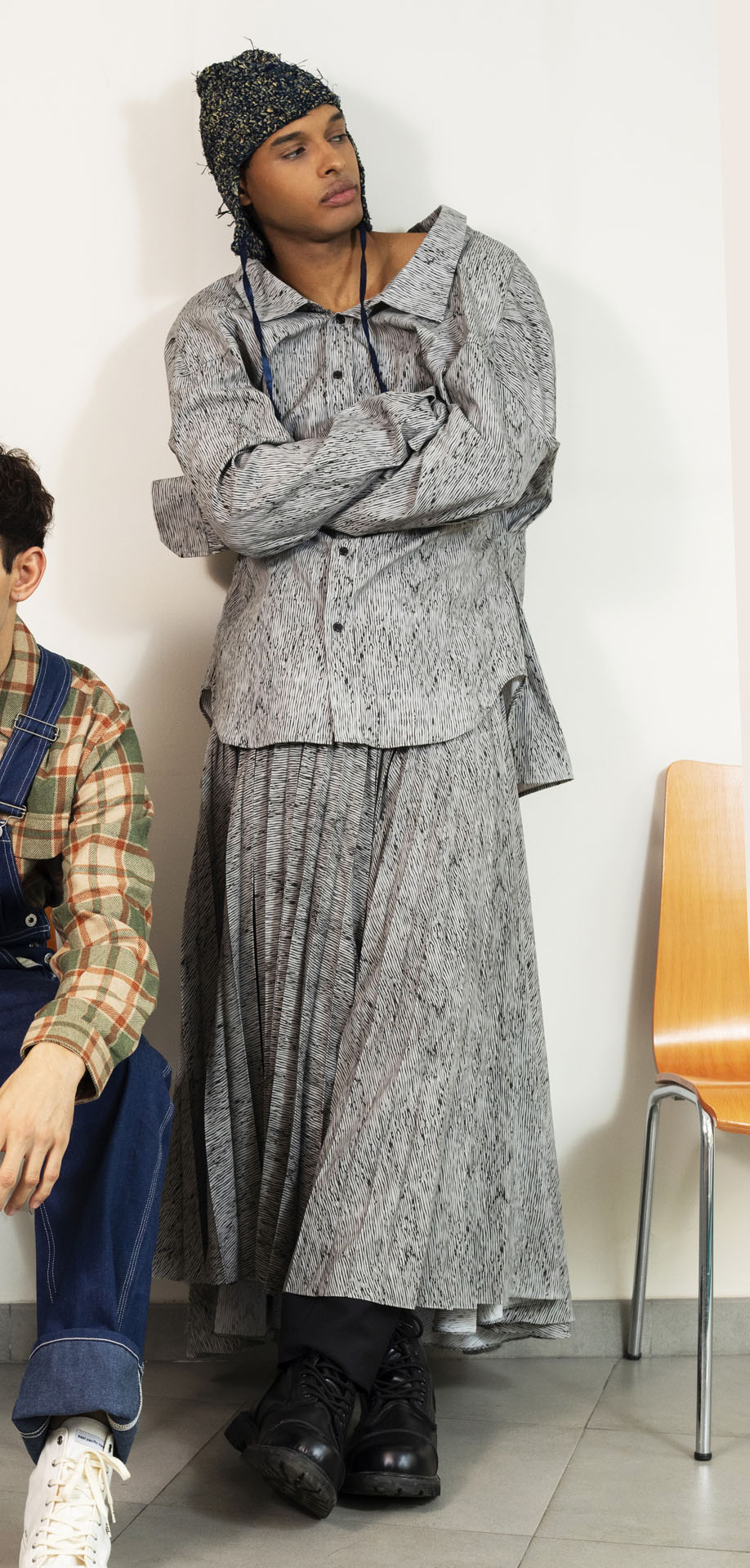 This exuberant garment provides a very powerful profile, a sculptoric statement piece.