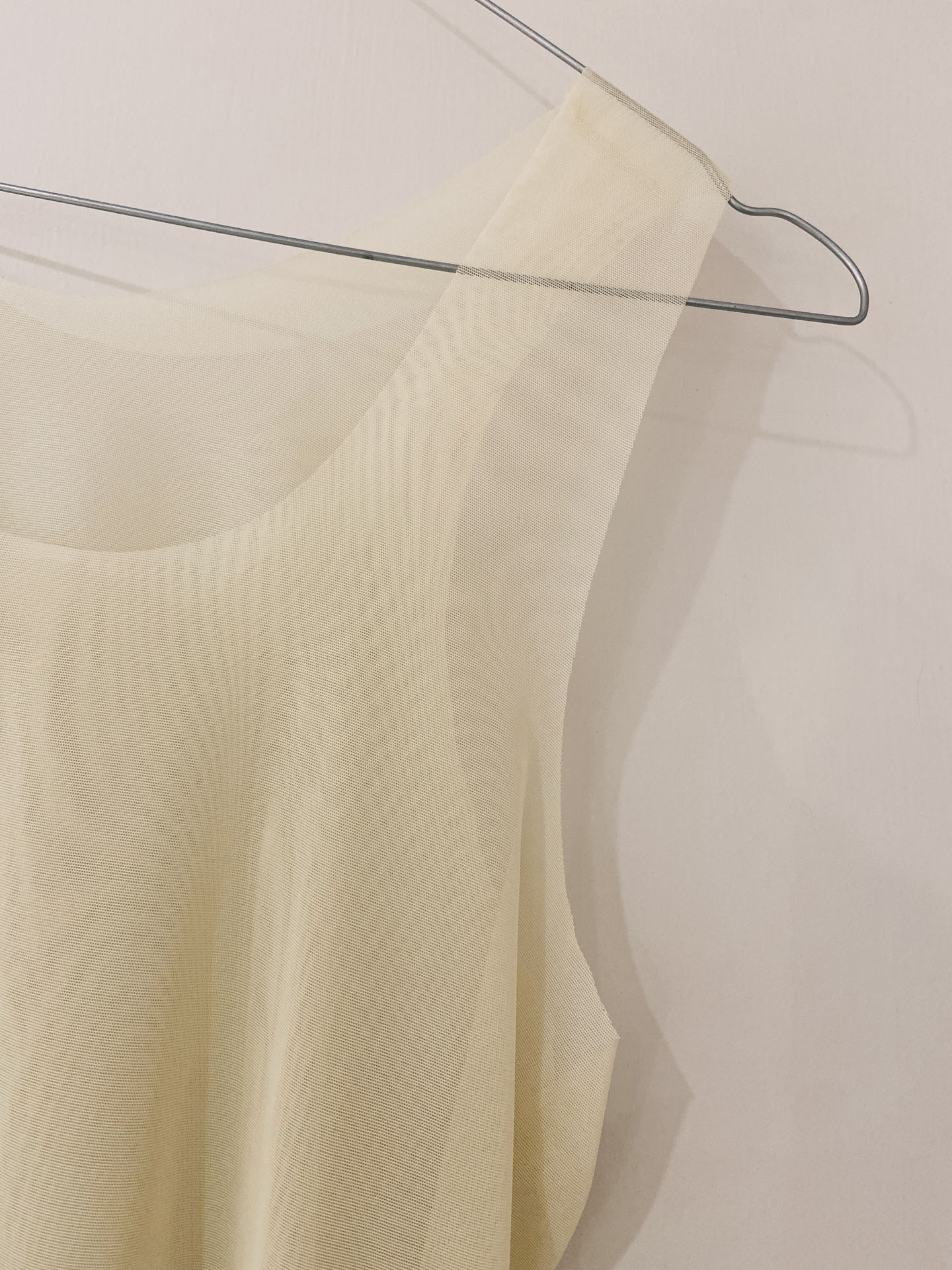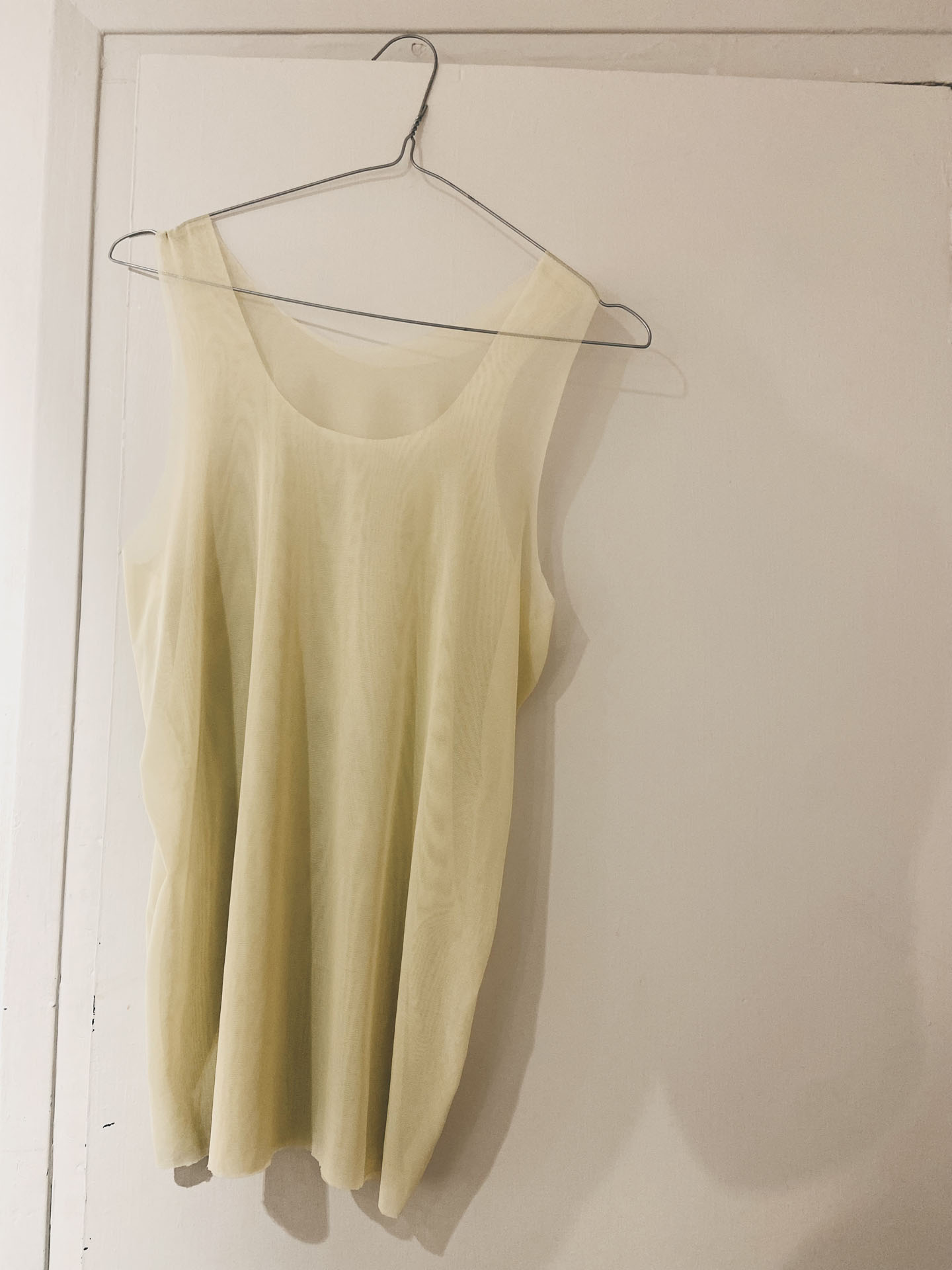 The Second Skin Tank Top Soft Lemon it’s made out of stretchy extremely comfy elastic tulle fabric.