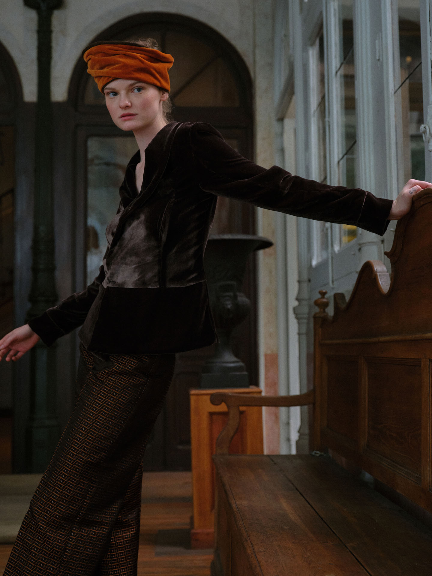 A silk velvet timeless piece, so soft and buttery, it will transport you to a cozy ski cabin or a 70s psychedelic party.